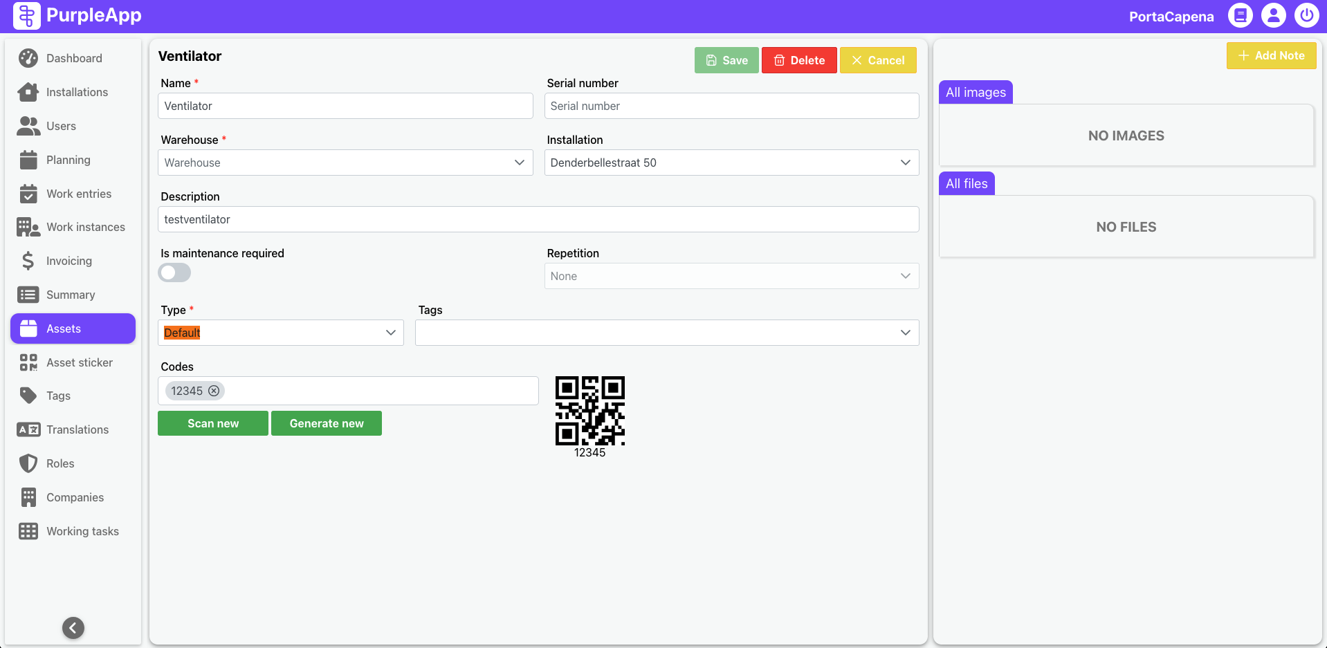 The Assets page is designed for managing devices that are installed or serviced in specific installations. It provides users with detailed insights into both registered devices awaiting installation and those already installed. Additionally, users can manage attached files such as photos, manuals, and other documentation, as well as track scheduled maintenance timelines.